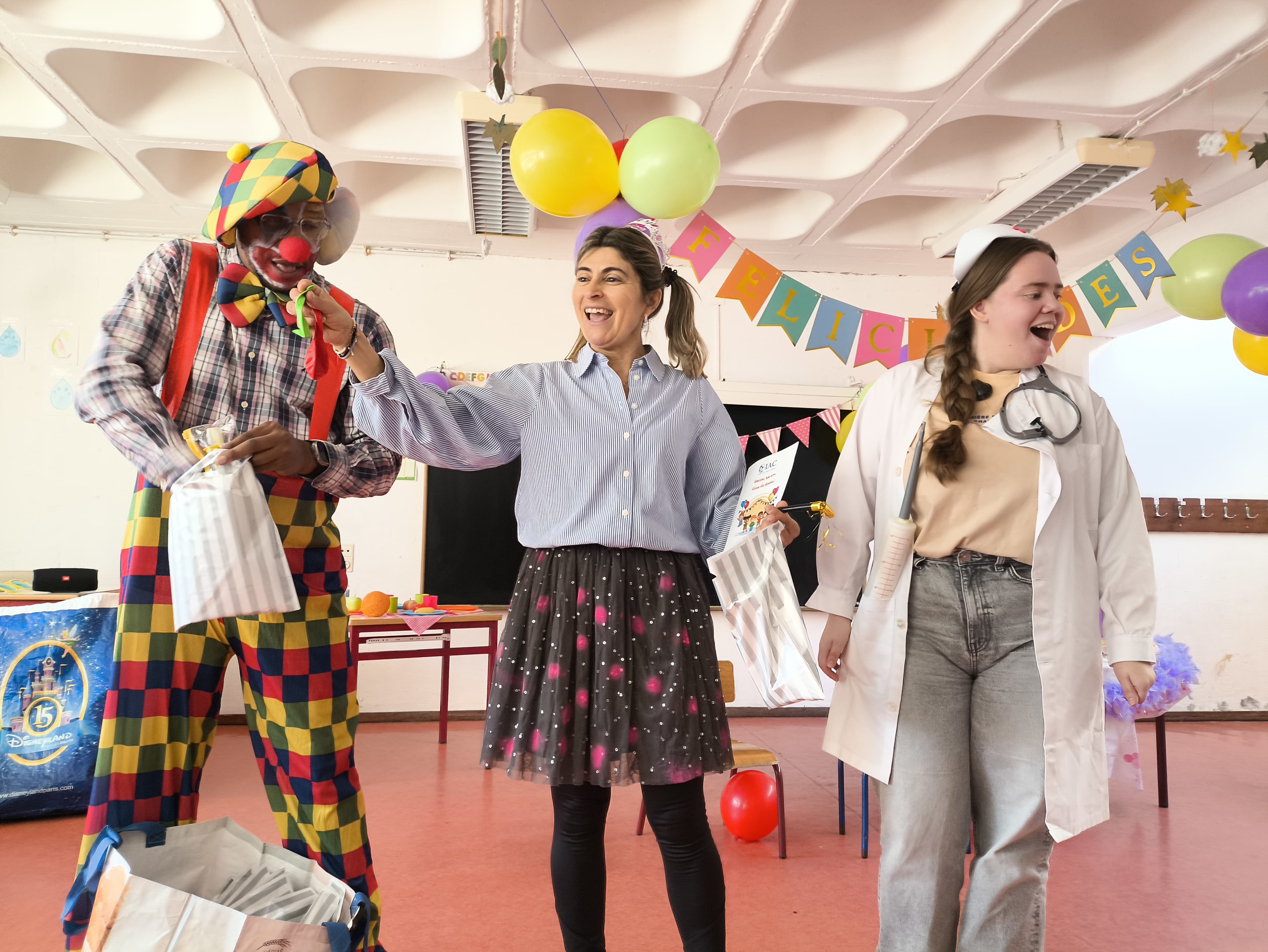 Muito divertido também, foi o nosso Palhaço! Apesar de dizer muitos disparates, que afinal é o seu trabalho, ajudou as crianças nos jogos, colaborou com as enfermeiras para ensinar muita coisa e deu apoio à Mariazinha a distribuir pelos amigos os saquinhos-presente com surpresas, mas SEM DOCES. Desta vez, ganharam um livrinho de atividades sobre o tema, balões para brincarem e um kit para lavarem bem os dentes, com uma escova bem gira e uma ampulheta para marcar o tempo de escovagem.